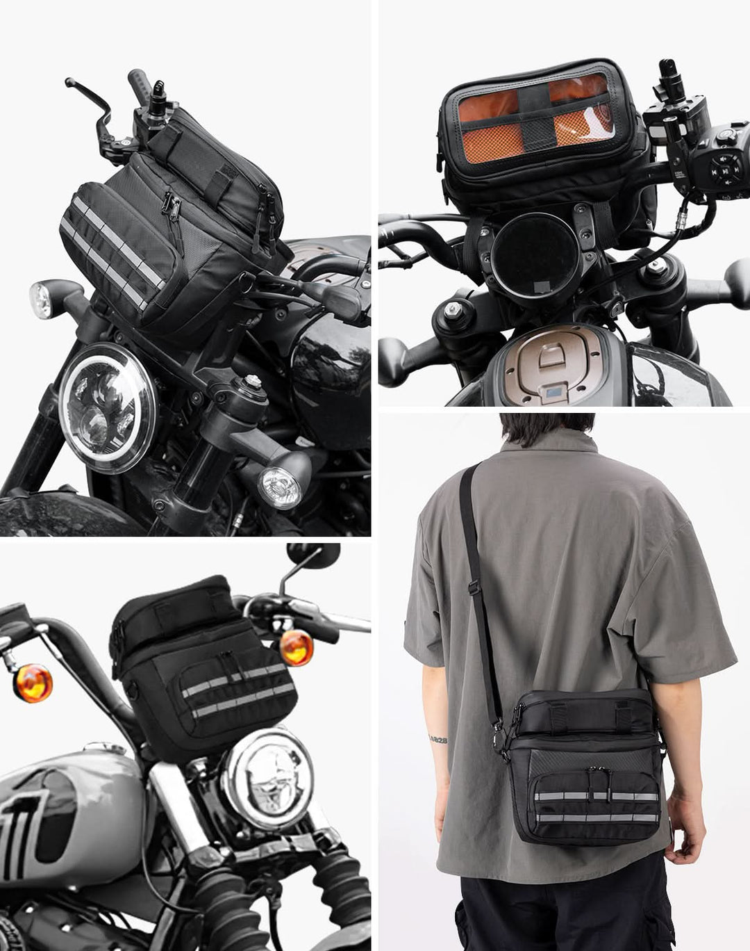 Motorcycle Handlebar Tool Bag for Cruiser Softail Dyna Sportster - Kemimoto