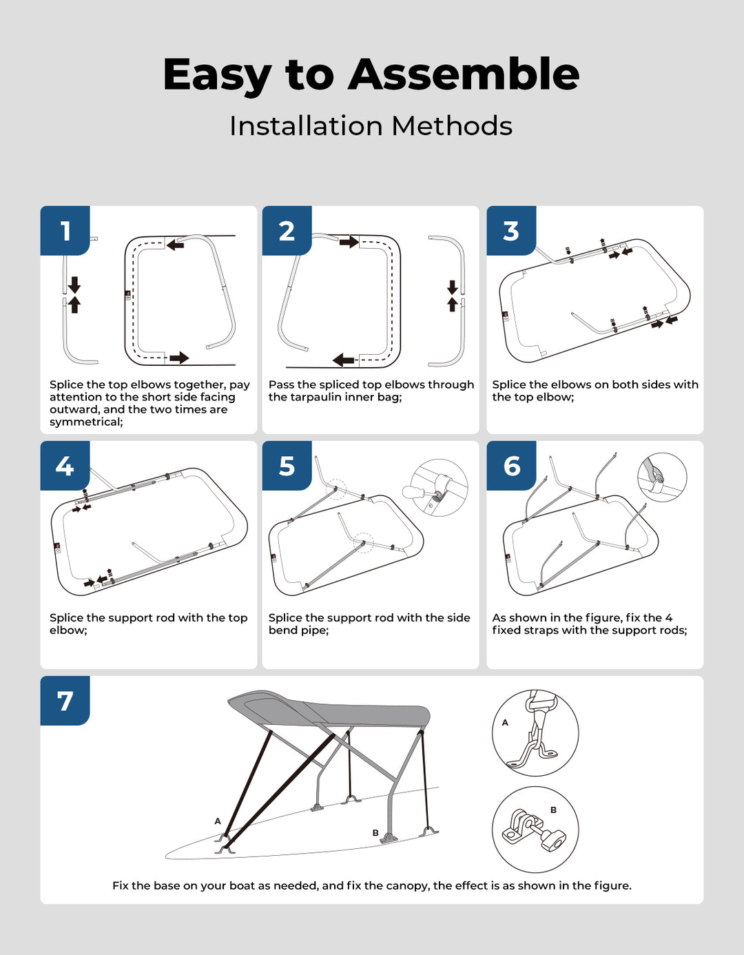 Our kayak canopy has UV-resistant function. It has strong color retention and neat and sturdy double seams.