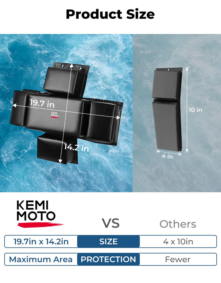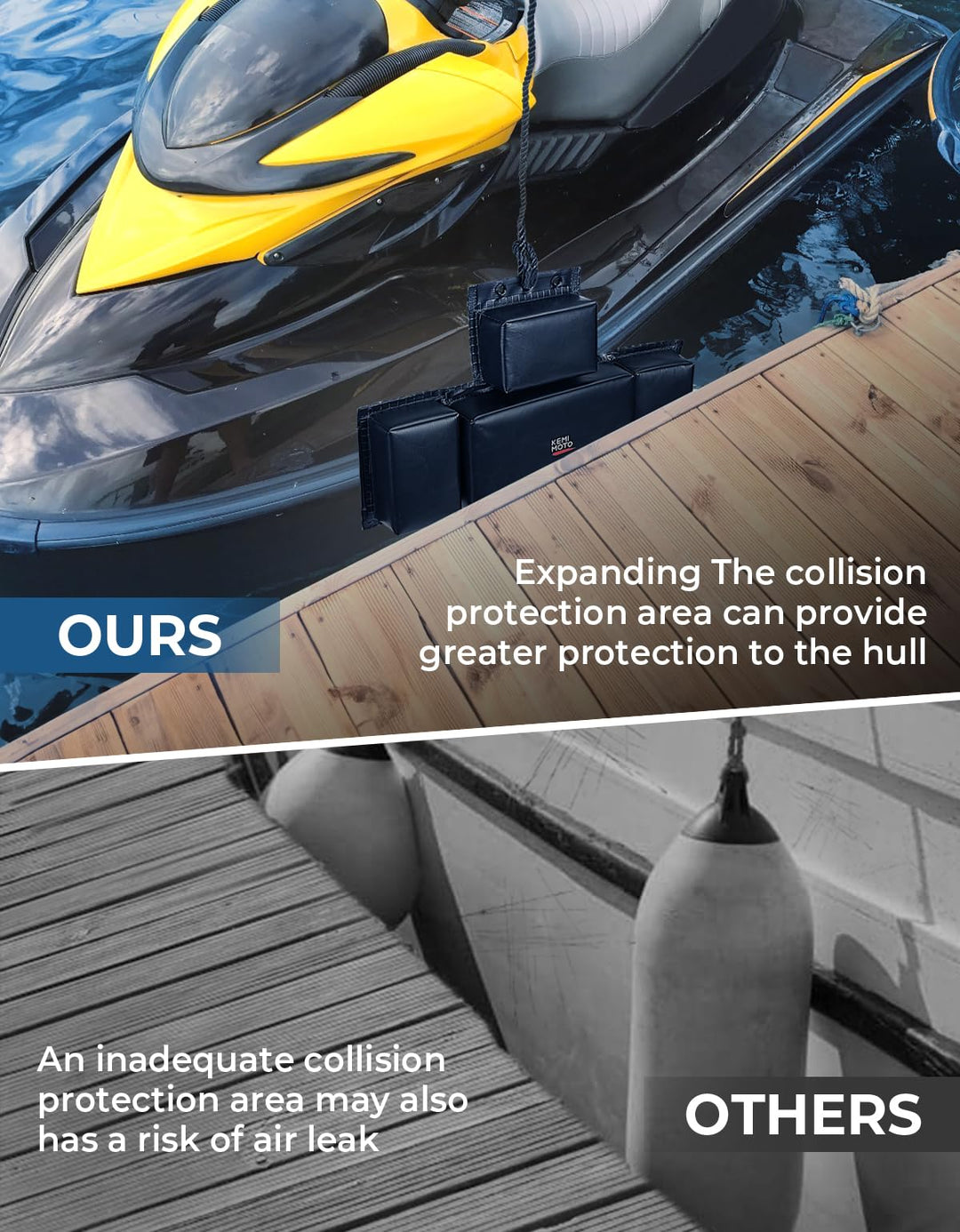 Our PWC fender offers 19.7in of horizontal padding which is 5 times more than other PWC fender bumpers.Expanding The Collision Protection Area,the impact of a collision can be spread out over a larger area, reducing the risk of damage to the hull.