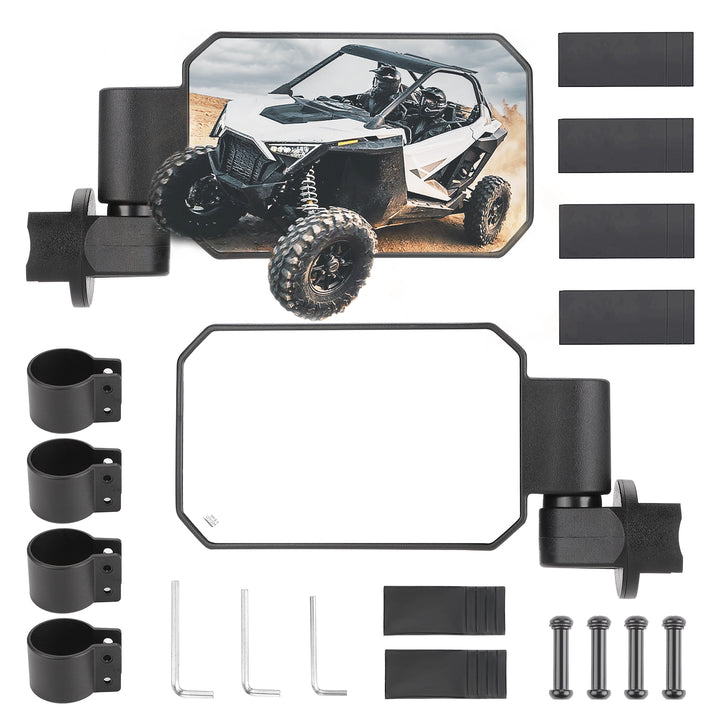 Rear View Mirror and Side Mirrors with 1.6" to 2" Roll Bar Cage