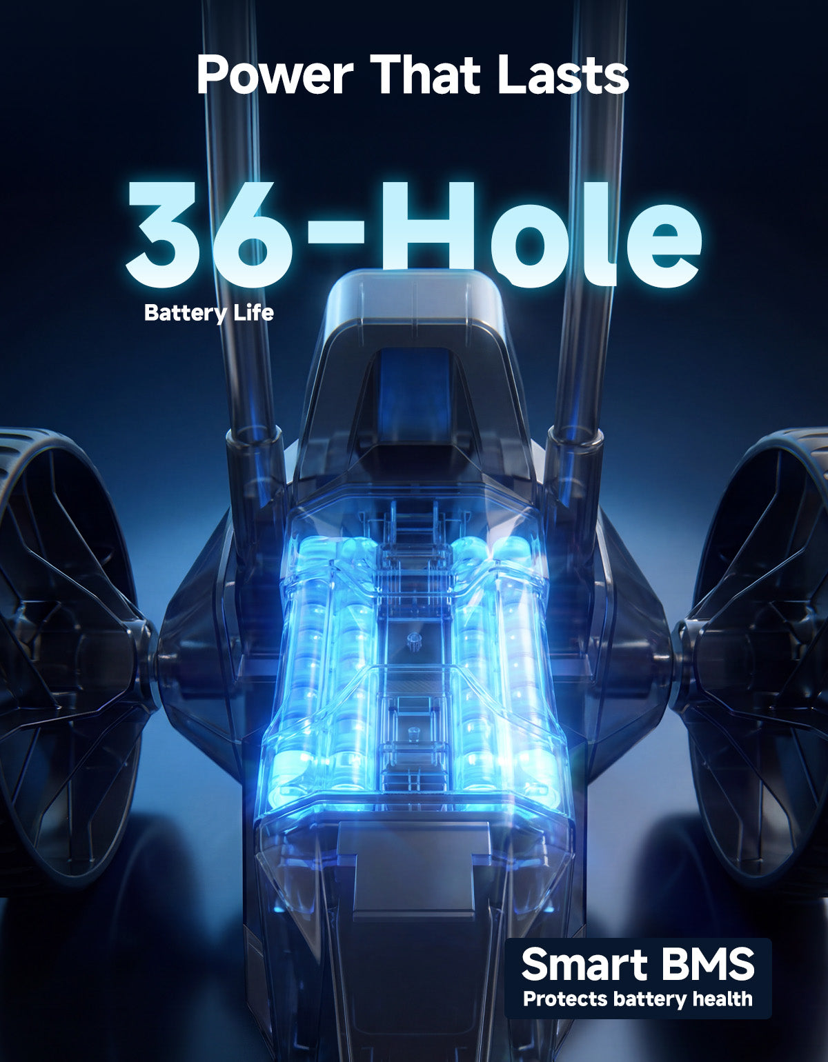 - Battery: Lithium-ion or LiFePO4 batteries provide power for 18–36 holes per charge. Advanced packs can last for multiple rounds.