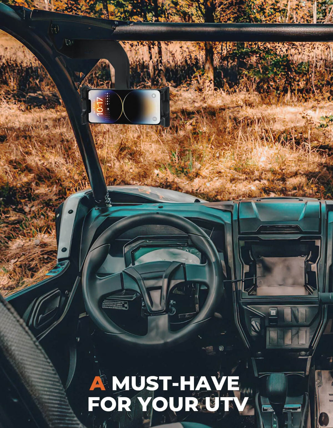 Keep your phone secure on every adventure with this UTV phone holder, specially designed for the Kawasaki Teryx Camo S LE and other UTV models. Featuring an ultra-stable design, it ensures your phone stays safe. With 360° adjustability, you can easily position your phone for navigation, music, or hands-free communication. Built with durable materials, this UTV phone holder is designed to withstand tough conditions while providing a reliable and convenient solution for your rides.
