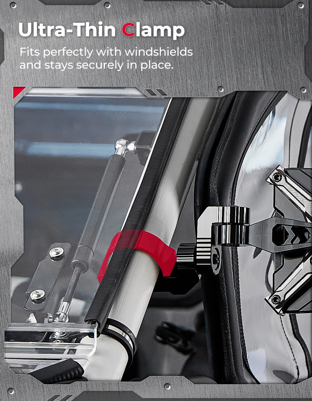 The ultra-thin clamp fits seamlessly with UTVs equipped with windshields. No need to remove the windshield for installation, and detailed video guides are available for hassle-free .