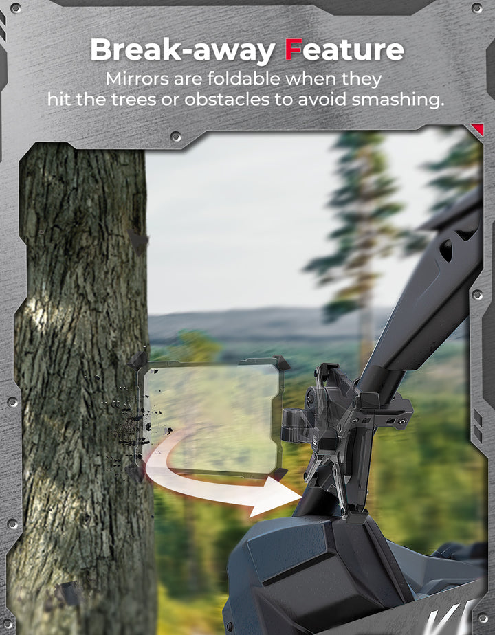 KEMIMOTO UTV side mirrors are crafted from heavy-duty CNC-machined aluminum alloy, built to withstand harsh off-road environments. The corrosion and impact-resistant design ensures long-lasting durability, reducing the risk of damage during rough terrain.