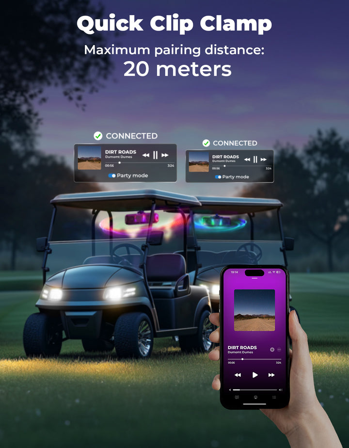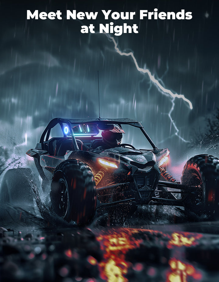 Transform your off-road adventures with the KEMIMOTO midnight 40 UTV sound bar – where thrilling sound, dazzling lights, and unstoppable durability collide. Unleash over 200 customizable lighting modes, including music-syncing iRISBeat, turning your ride into a rolling party. Need to focus? Switch to the all-white reading light for crystal-clear visibility. Blast your favorite tunes with 300W of peak power, distortion-free clarity, and bass that thumps over any engine roar. The weatherproof aluminum alloy design laughs at extreme temperatures, humidity, and dust – it's built to outlast your wildest adventures. Ready to level up your off-road adventures? Order your Midnight 40 bluetooth sound bars for utv today!
