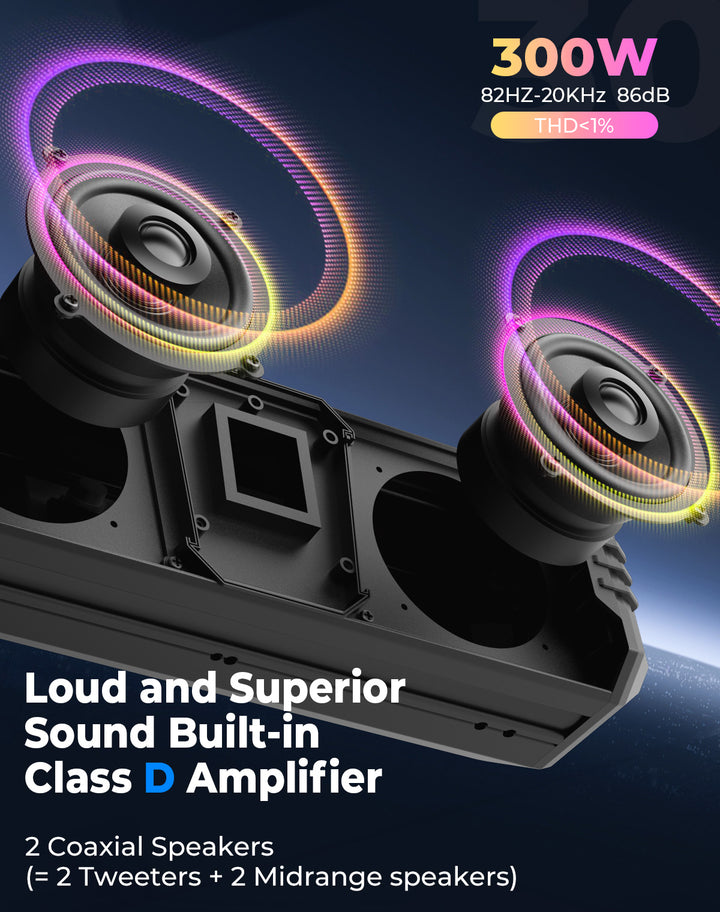 KEMIMOTO Midnight 40 16'' RGB Bluetooth Sound Bar for UTV Golf Cart Marine Boat - Kemimoto