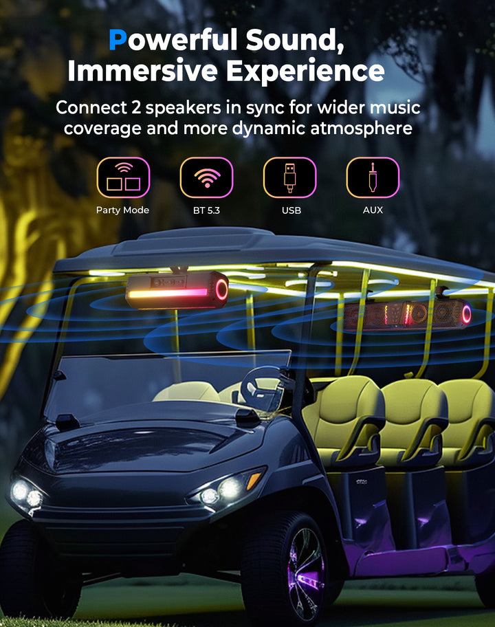 KEMIMOTO Midnight 40 16'' RGB Bluetooth Sound Bar for UTV Golf Cart Marine Boat