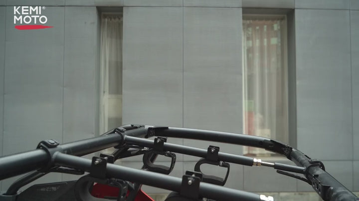 The KEMIMOTO UTV Overhead Tool Holder Rack is a roof-mounted tool and bow rack designed for 23-inch to 32-inch roll bars, compatible with Polaris Ranger and Mule. Perfect for hunting and outdoor activities, this tool holder provides secure storage and easy access to your gear while maximizing space in your UTV. Enhance your off-road experience with this versatile and durable overhead tool holder.