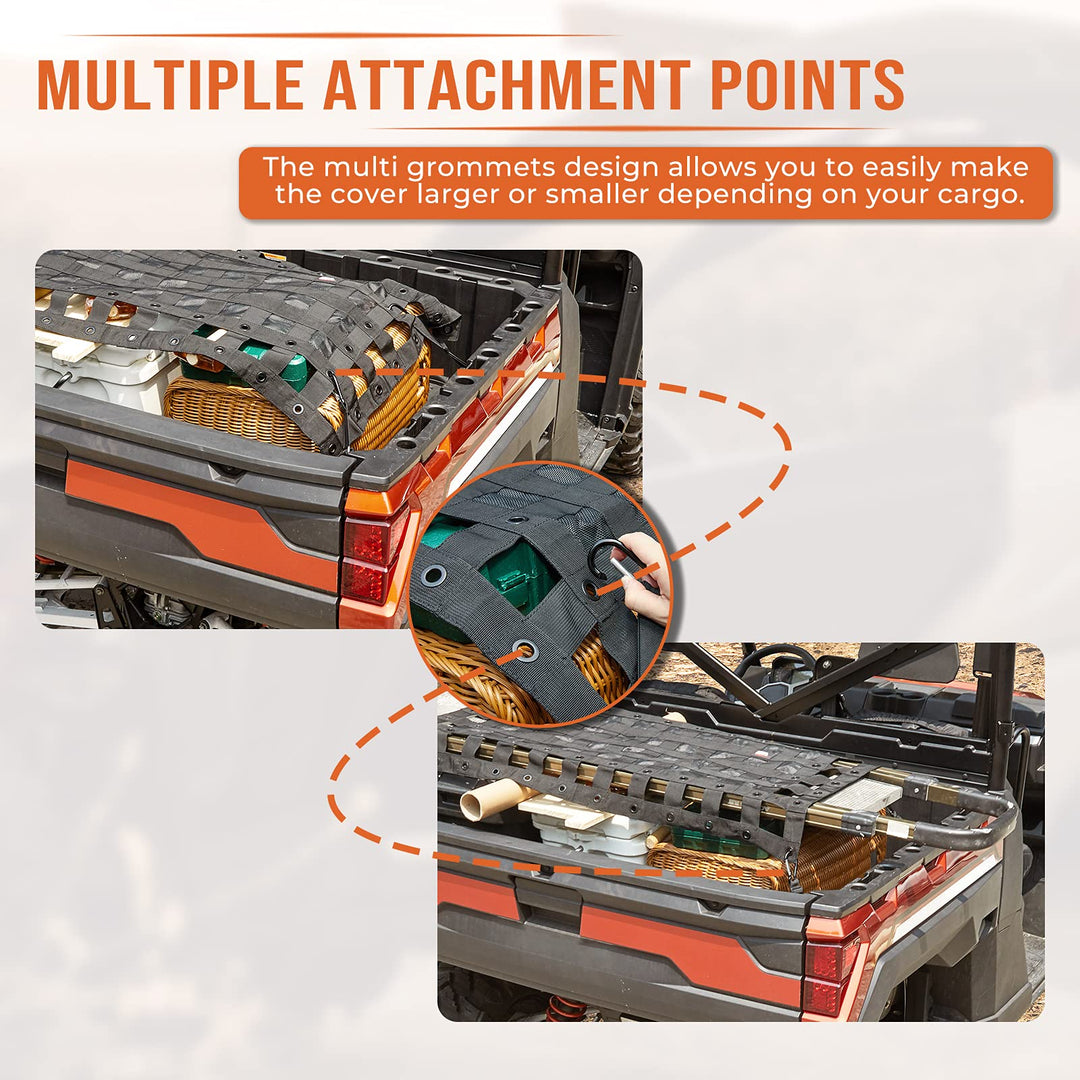 Heavy Duty UTV Bed Cargo Net For Polaris Ranger, Can-Am - Kemimoto