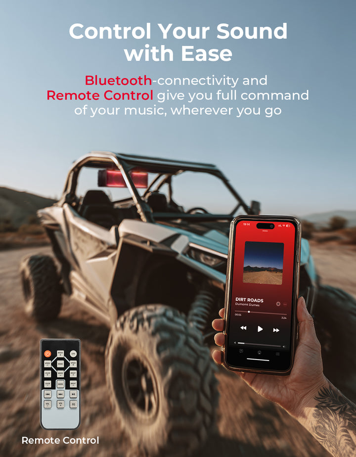 KEMIMOTO SXS Sound Bar is compliant with IP65 Rating International Standard. Offering Complete protection from dust, oil, and other non-corrosive material, and a good level of protection against water.