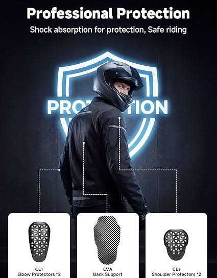 The KEMIMOTO motorcycle mesh jacket features 75% large-area mesh panels on the front and back for superior airflow, keeping you cool and dry during summer rides while maintaining lightweight durability for long-distance touring. A dual-adjustment sleeve system with three-level customization secures CE Level 1 shoulder and elbow armor along with an EVA back protector, preventing shifting during movement and enhancing impact protection. The ergonomic 3D cut with a shorter front and longer back prevents lift-up and exposure while riding, while the flexible rear design supports natural posture and reduces wind resistance. Reflective strips improve nighttime visibility, and adjustable cuffs and hem provide a secure fit for various body types, making this jacket ideal for daily commuting and off-road adventures.
