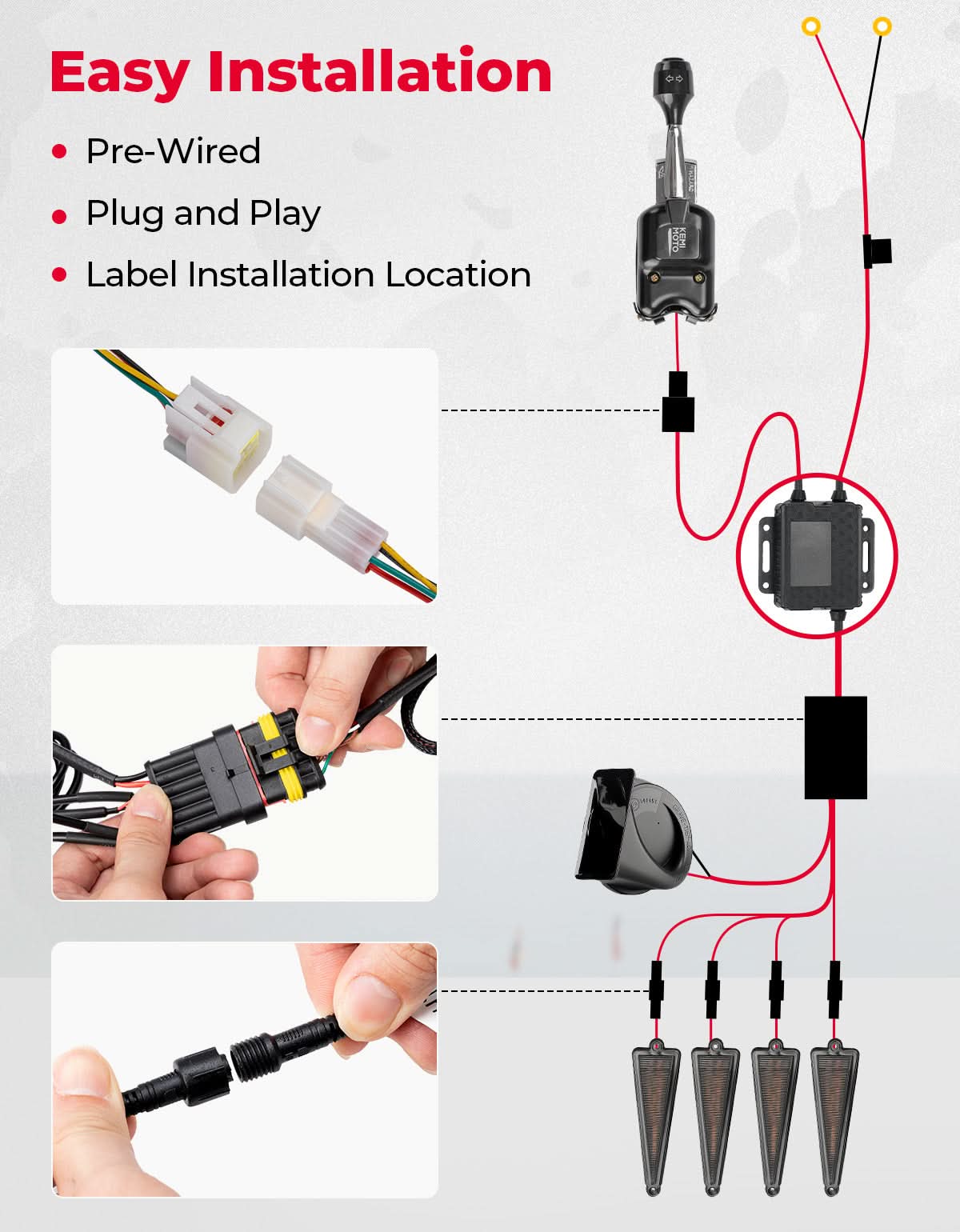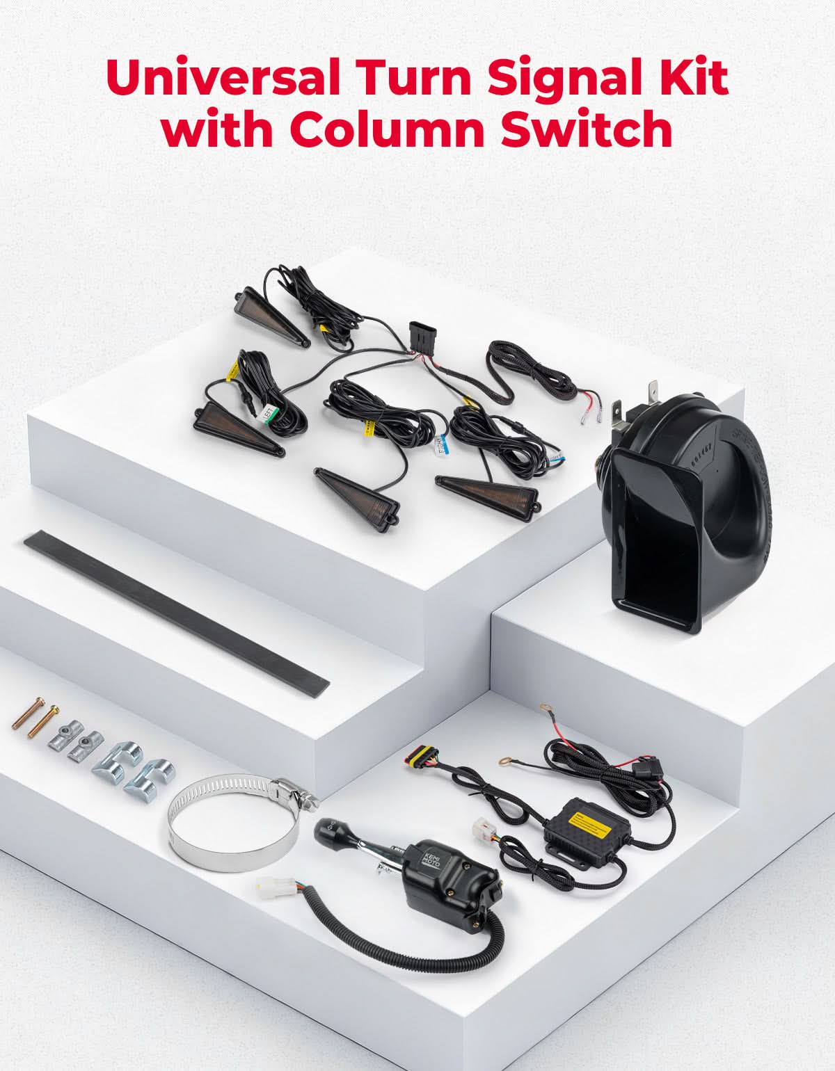 UTV Universal 3-in-1 Triangle Turn Signal Kit with Column Switch & 110dB Horn - Kemimoto
