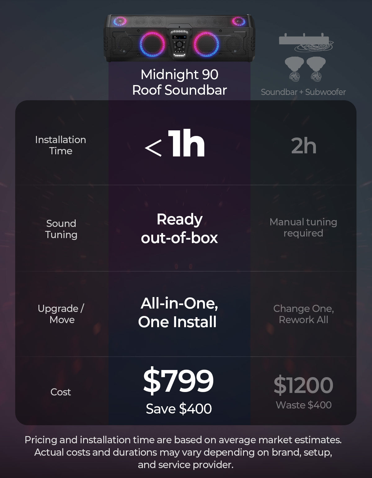 Midnight 90 Roof 34 Inch Soundbar For Can-Am Polaris UTV Bluetooth Speaker Fits 1.45–2" Roll Cages