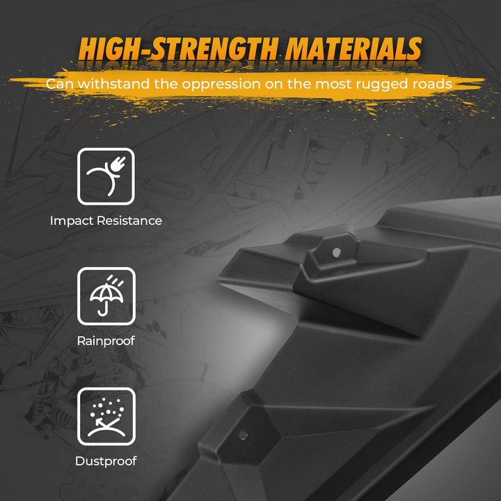 These high-quality Polaris RZR fender flares are a game-changer. Made from tough polypropylene, they resist impact, heat, rain, and dust. The extended design adds an extra 4 inches of width, giving you more protection against mud, rocks, and debris. Upgrade your ride’s look and keep it cleaner longer with these durable, easy-to-install fender flares. Don’t miss out on this essential accessory for your off-road adventures!