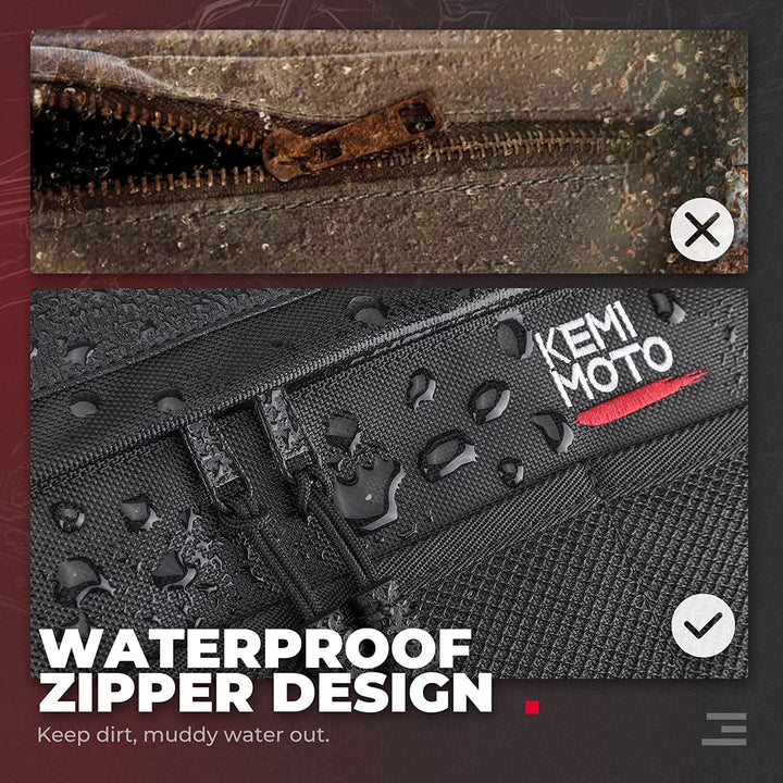 RZR side bag is made of high-quality water-resistant 1680D fabric, which can use much longer than other storage bags made of 210D, 400D, and 600D. Waterproof double head zipper and the brim beside the zipper can block more dirt, dust, and muddy water.