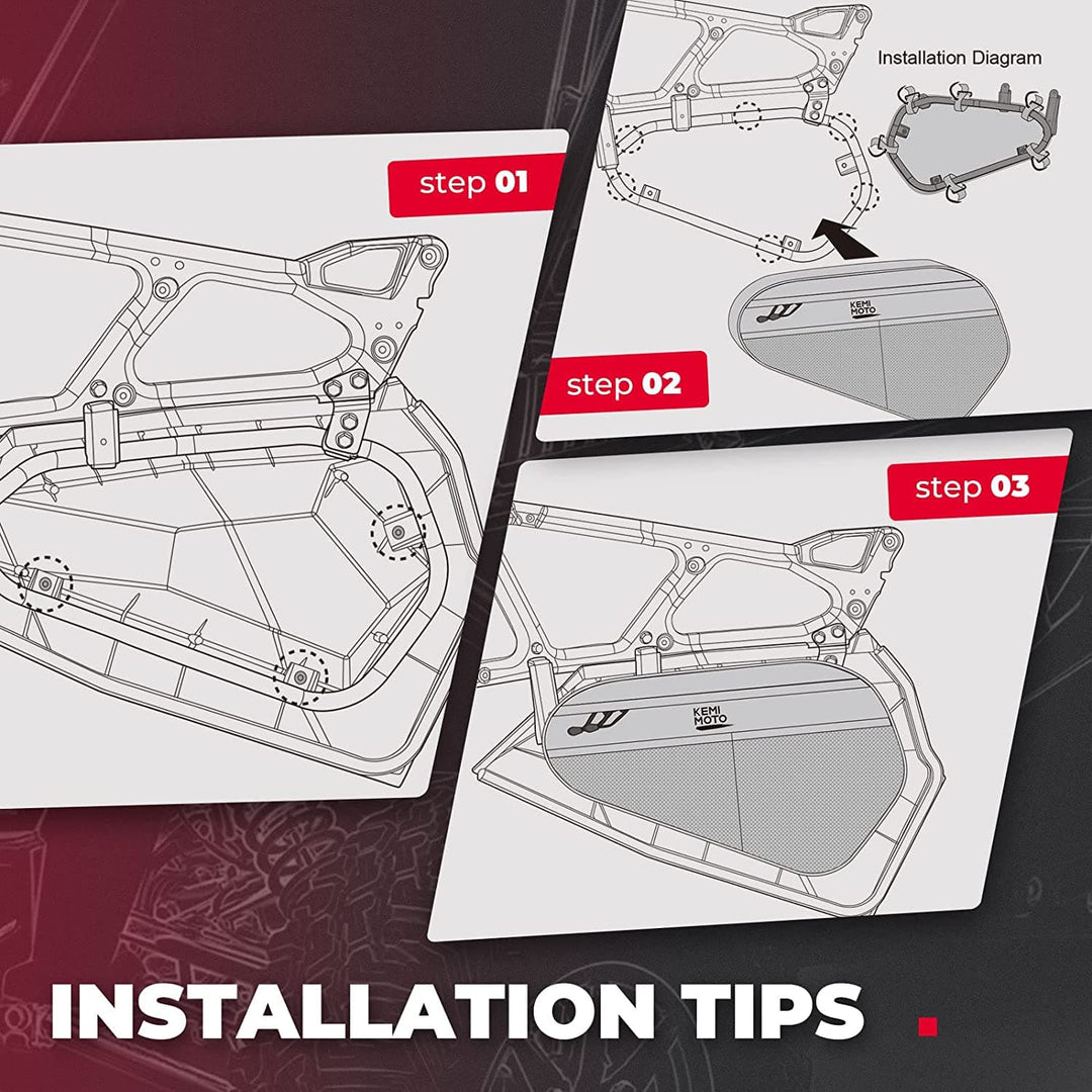 Remove three self-tapping screws and detach the lower door panel from the door frame. Attach the six hoop and loop straps of the lower door bag to the door frame. Reinstall the lower door panel to the door frame with three self-tapping screws. Simple installation and no drilling required. Pls feel free to contact us if you have any problems. We will provide a satisfactory solution in 24 hours.