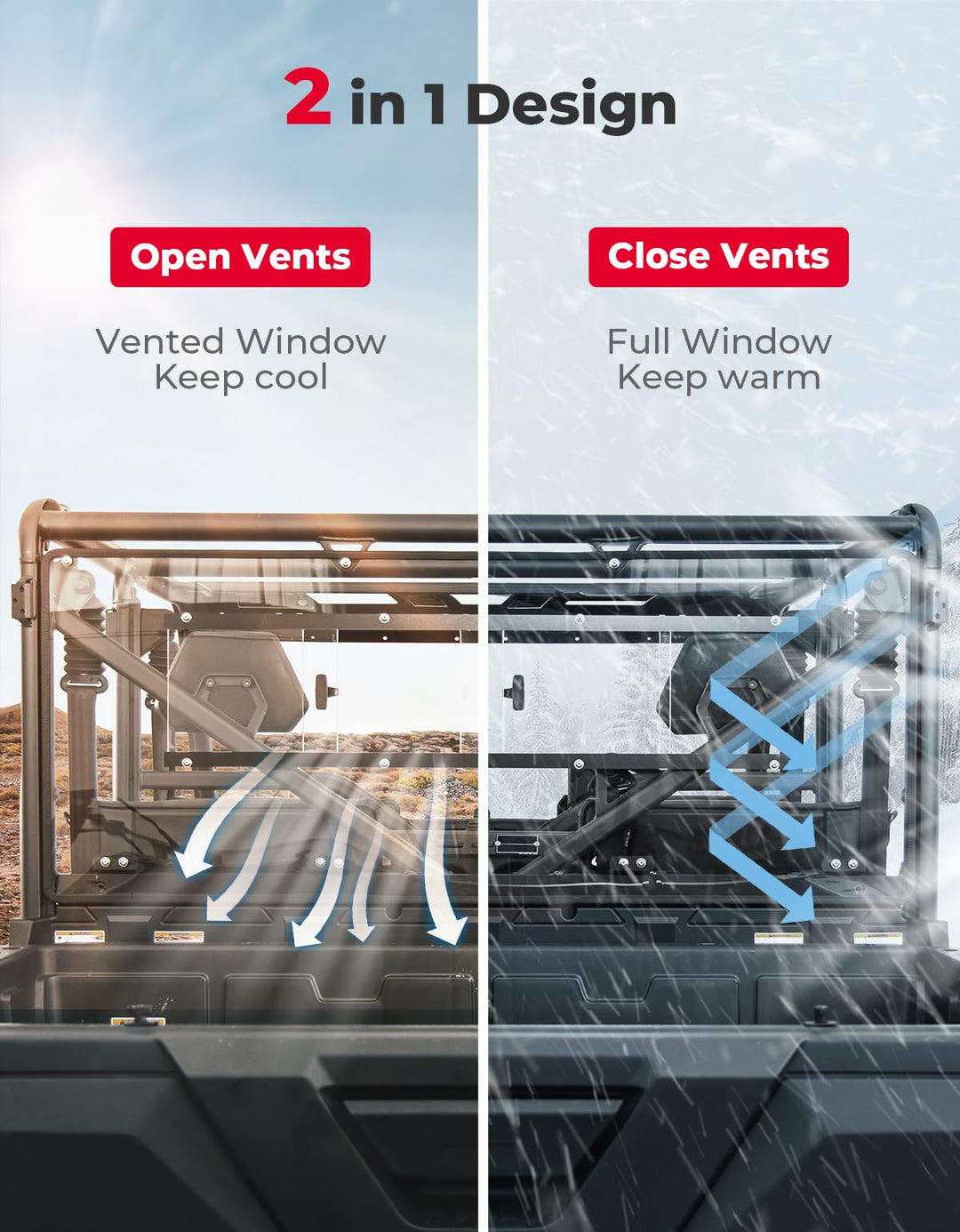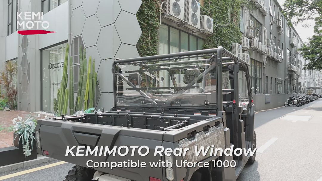 Upgrade your CFMOTO UForce 1000 / 1000XL with the Kemimoto rear sliding windshield! This 2-in-1 design has adjustable sliding vents for cool airflow in the summer and full closure to keep out cold winter wind. It’s the perfect year-round companion, protecting you from mud, dust, rain, wind, and bugs while reducing noise so you can enjoy your favorite tunes. Made from super strong polycarbonate, it’s 250 times stronger than glass and 25 times tougher than acrylic. Plus, it's a breeze to install and remove with its pre-installed rubber strips. Don't miss out on this incredible upgrade—make your rides safer and more comfortable today!