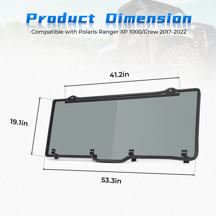 This durable polaris ranger 1000 windshield is made of high-quality PC material, 250X stronger than glass, providing excellent shock-resistance, shatter-resistance, and corrosion-resistance. The rear windshield offers full protection during your journey, keeping passengers safe from water, mud, and debris.