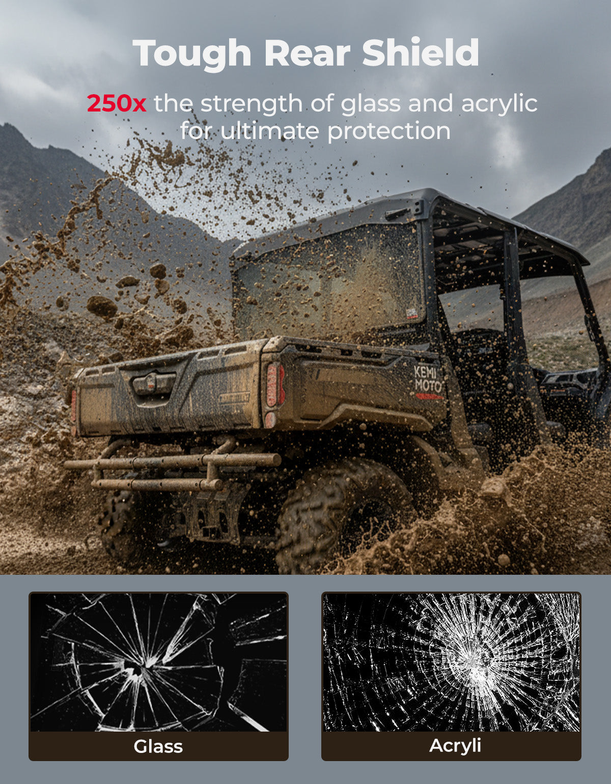 The windshield for can am defender is designed to provide clear visibility, allowing you to have a better view of the road and surroundings while riding. It ensures a safer and more enjoyable riding experience. This rear windshield offers protection against various weather conditions such as rain, snow, and wind. It helps to keep you dry and comfortable during your rides, allowing you to focus on the road ahead.