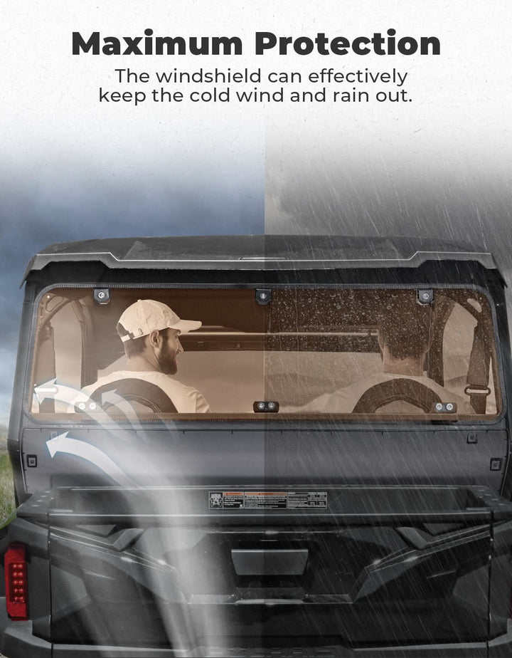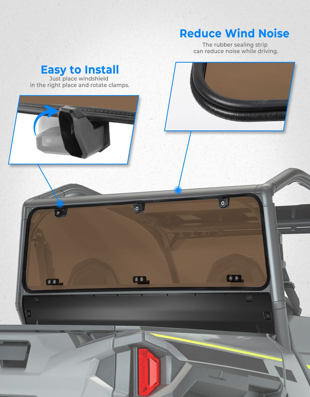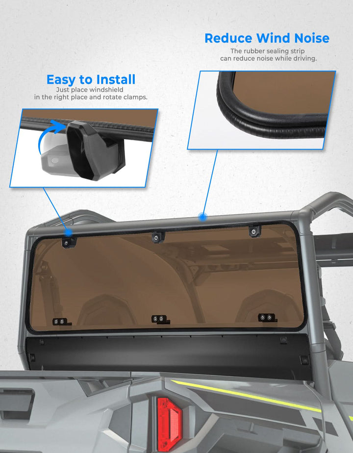Tinted Rear Hard Windshield for Polaris General 1000/4/XP 1000/4 2016-2025 - Kemimoto