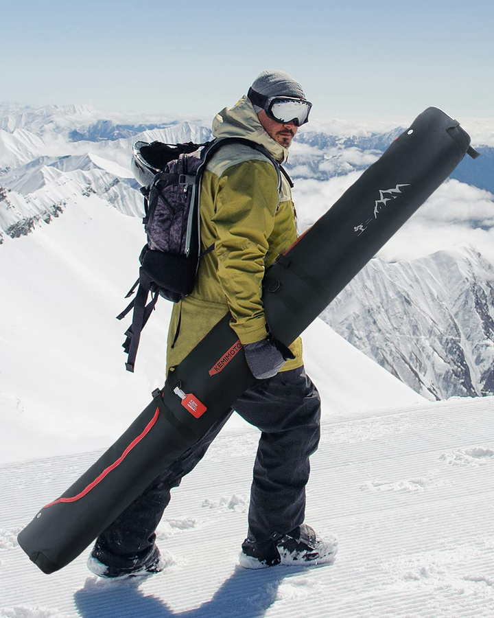 Constructed from premium 600D Oxford fabric, this bag is durably crafted to withstand the demands of travel and harsh weather conditions. This durable snowboard boot bag combo shields your equipment from the elements, ensuring a worry-free journey. Say goodbye to gear damage! The internal tightening strap secures your skis and poles, preventing movement during travel.