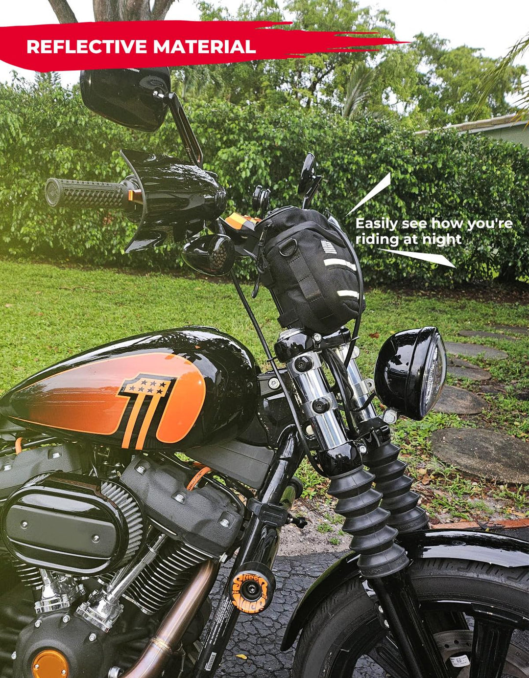 Motorcycle Handlebar Bag with Reflective Strips for Cruiser Softail Dyna Sportsters