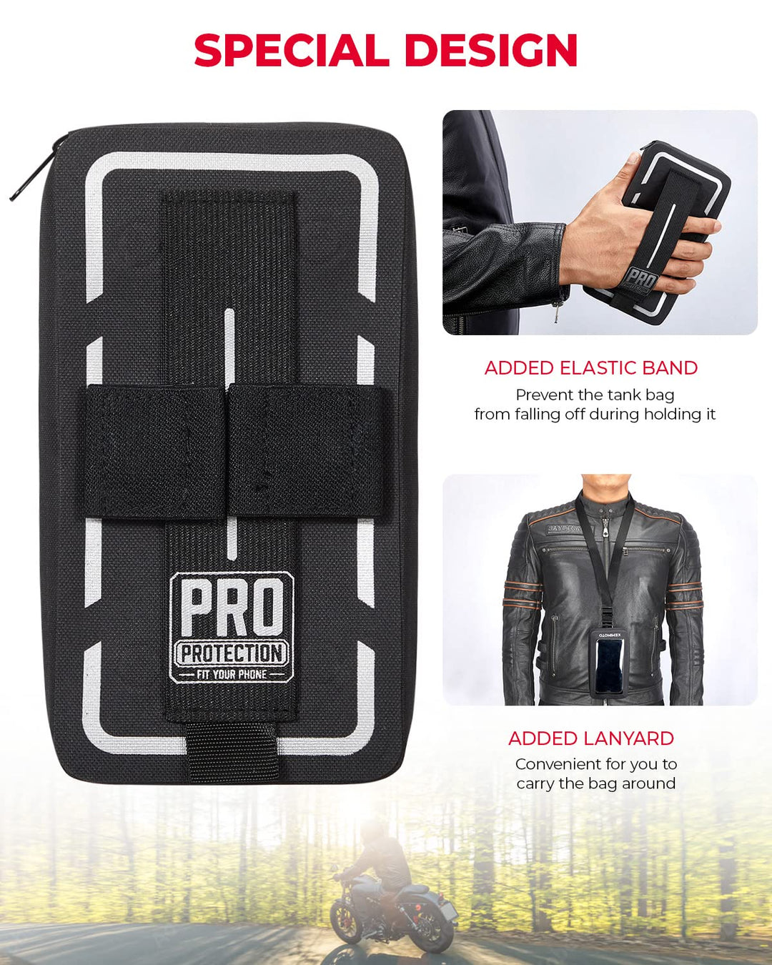 The KEMIMOTO Motorcycle Waterproof Tank Bag is designed for convenience and durability. This phone tank bag features 8 strong adsorption snaps to securely hold it in place, and a TPU phone pouch with a sensitive touch screen, compatible with cell phones up to 6.5 inches. Ideal for motorcyclists who need easy access to their phone while riding, this waterproof tank bag provides reliable protection for your device. Perfect for those seeking a high-quality motorcycle tank bag with excellent functionality and ease of use.