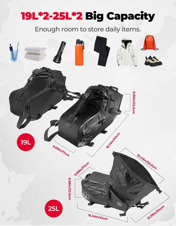 38L Universal Motorcycle Saddlebags for Sportster, Softail, Dyna - Kemimoto