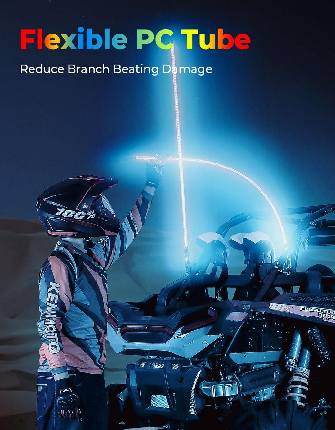 5FT 2PCS Bendable Whip Lights RF Wireless Remote for UTV/ATV/Boat - Kemimoto
