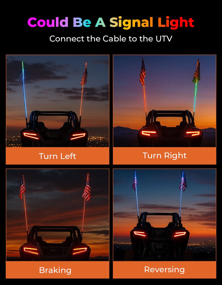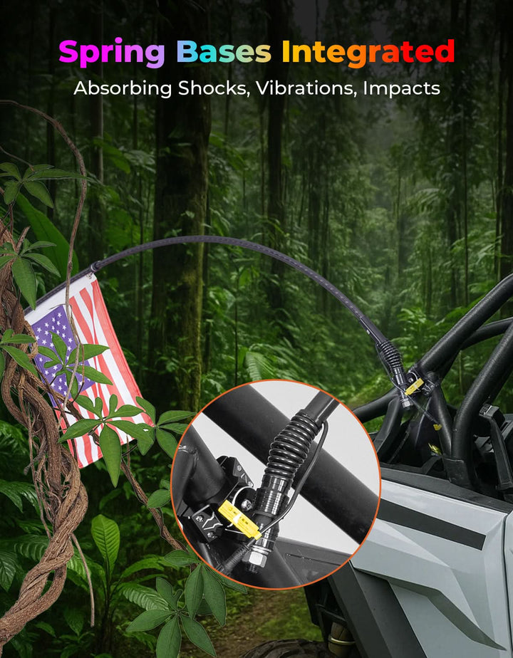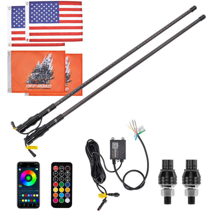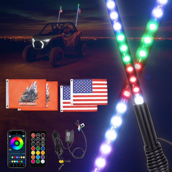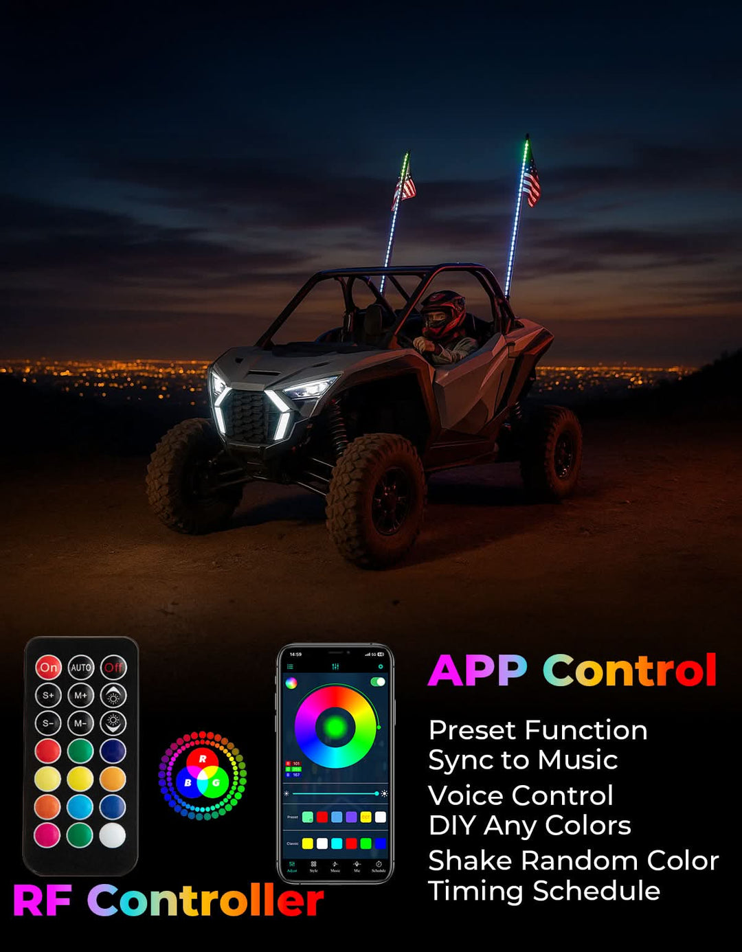UTV LED Whip Lights 3FT (2PCS) – APP Control, Signal Sync, Spring Base – Fits Maverick X3, Polaris RZR, Talon