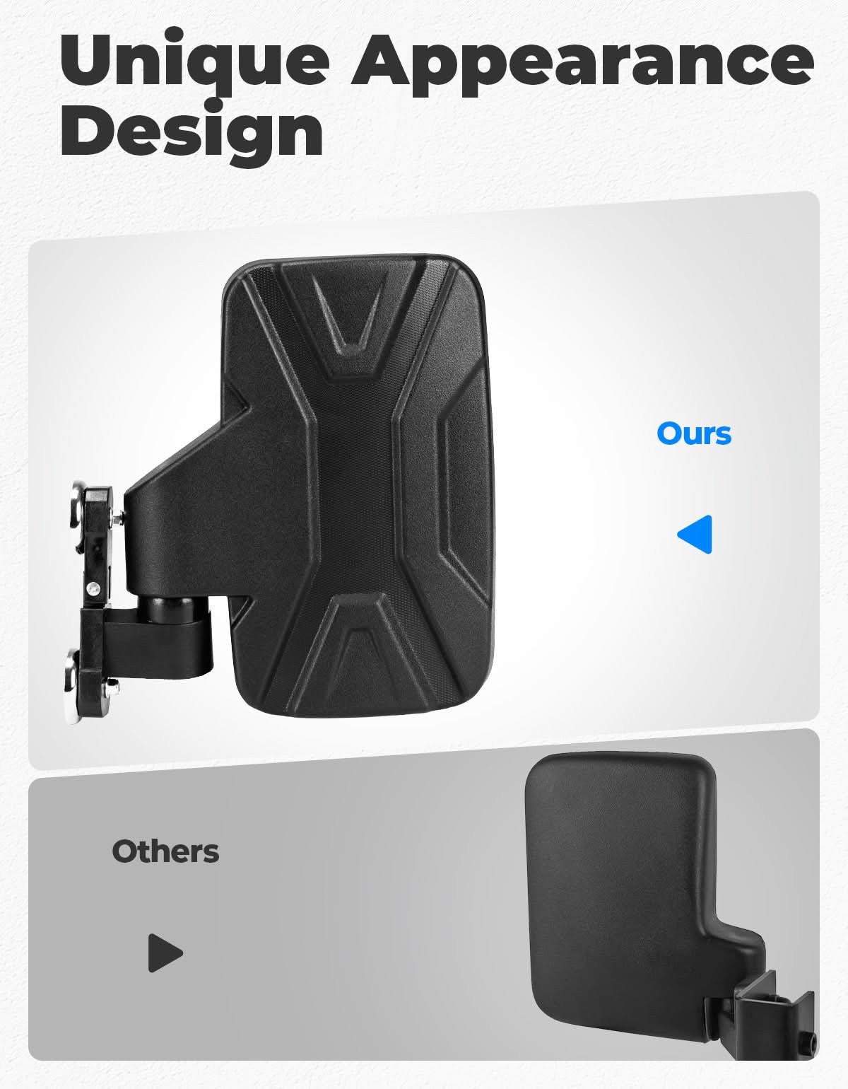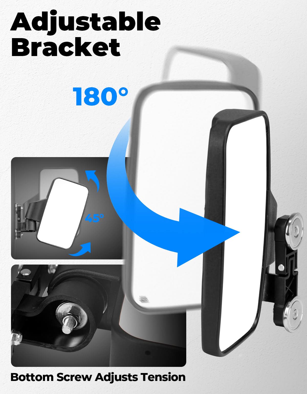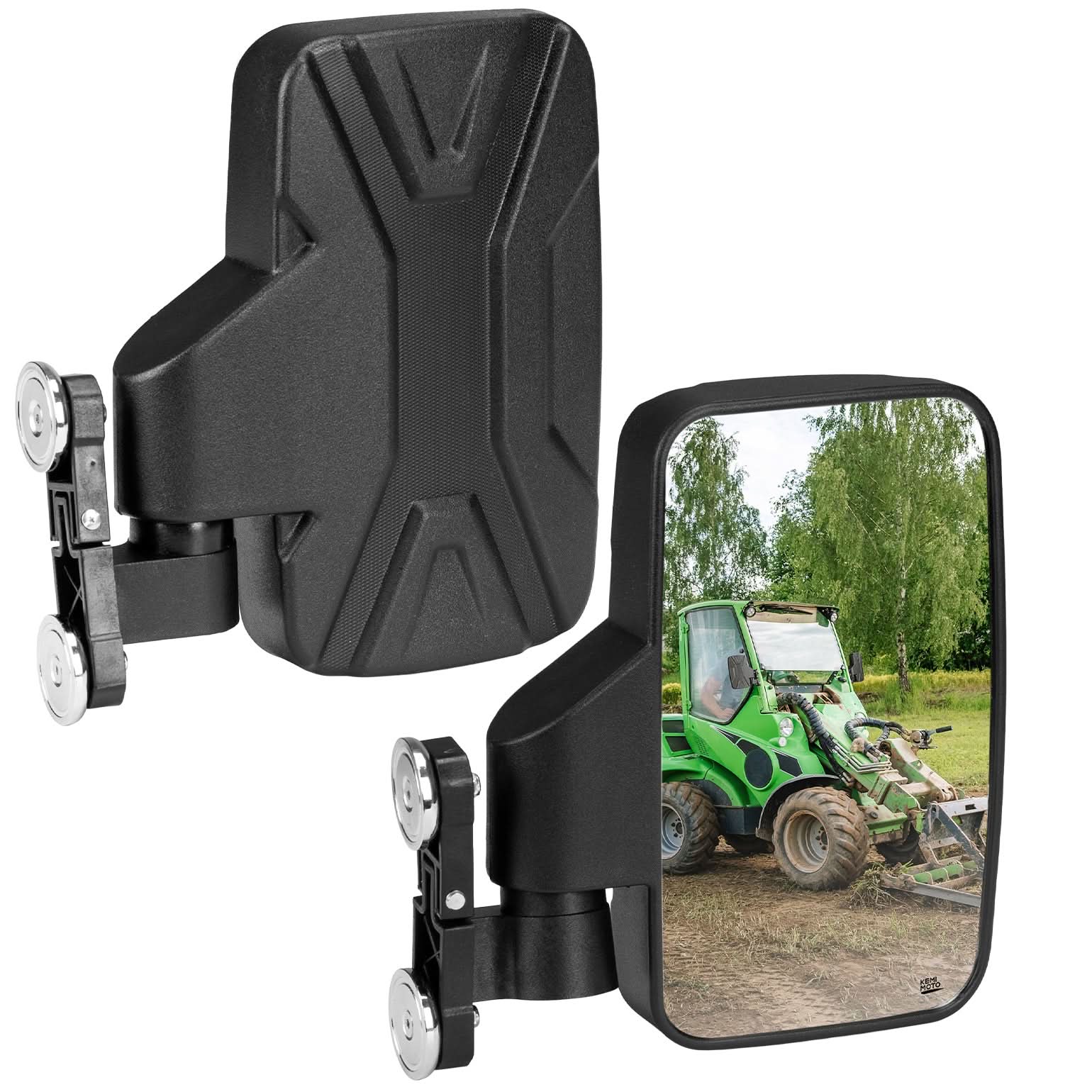 Enhance driving safety with the KEMIMOTO magnetic golf cart side mirror. Its large convex lens offers a wide, clear view to reduce blind spots. Built with high-impact ABS, it withstands shocks and harsh weather for long-lasting durability. Enjoy flexible positioning with 180° folding and 15° vertical adjustment that stays stable on rough terrain. Installation is fast and tool-free—the strong magnetic mount snaps securely onto your cart. Compatible with EZGO, Yamaha, Club Car, tractors, UTVs, ATVs, and go-karts.