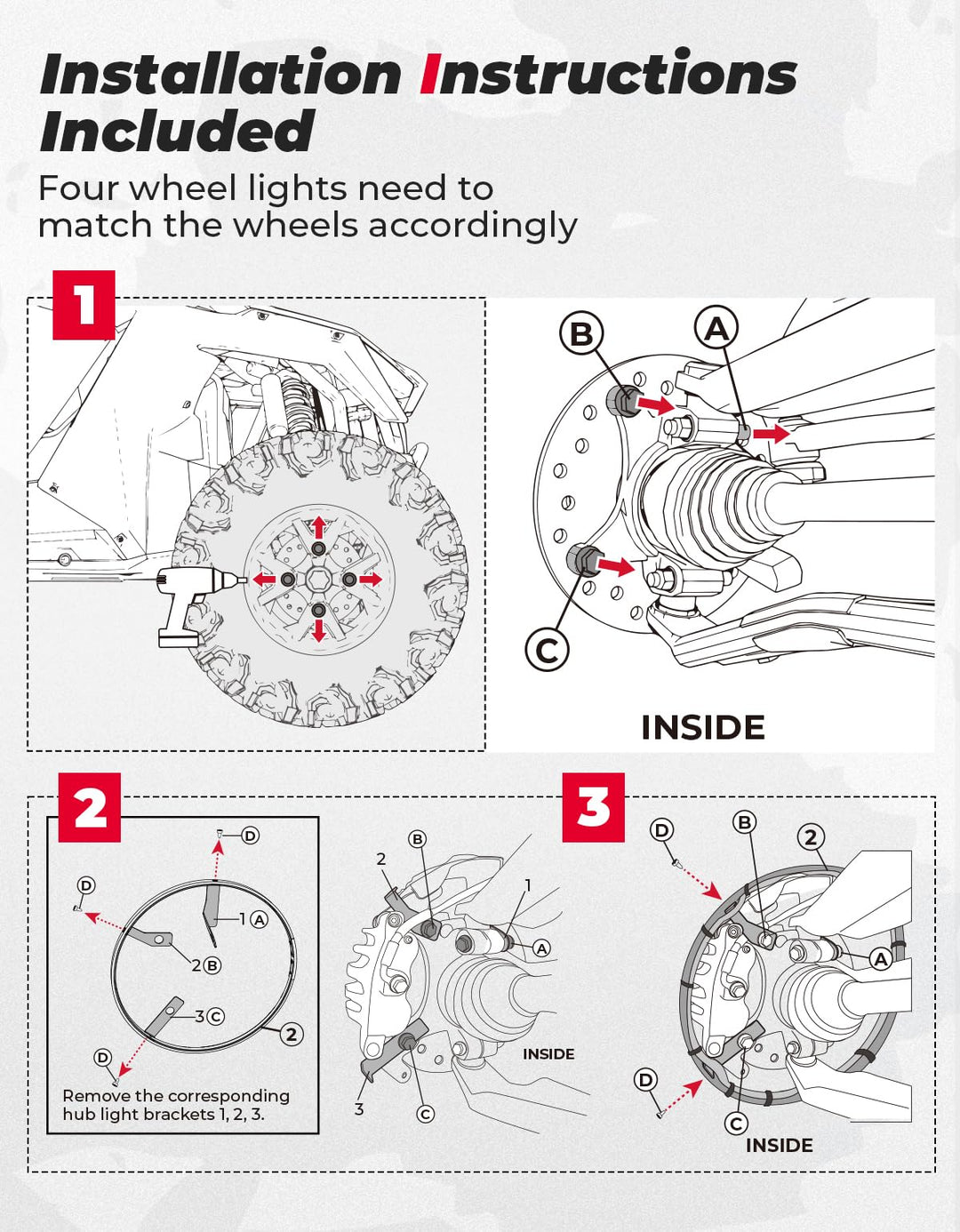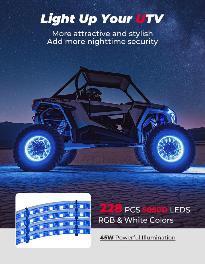 UTV Wheel Ring Lights Kit w/RGB Chasing Color for Polaris RZR PRO XP/4 2020-2024