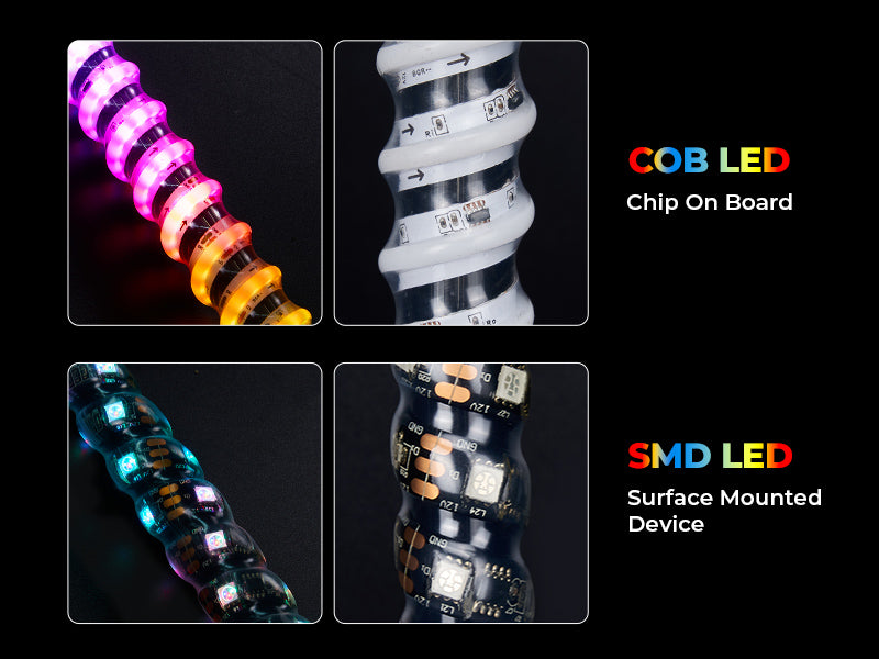 Number of LEDs for COB whip lights is 2.5 times that of 5050 SMD whip lights, each 3ft COB flagpole light integrates 1440pcs of high-density light beads, which greatly enhances the brightness yet reduces the glare. KEMIMOTO 2024 New whip lights definitely make your side by side stand out from the crowd!