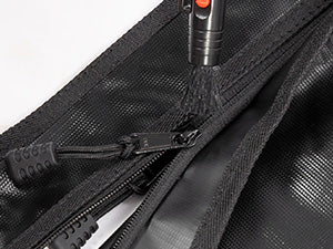 Kemimoto CFMOTO UForce1000XL soft cab enclosure doors feature custom YKK zippers for easy vehicle access. Protective covers over the zippers maximize resistance to dirt and rain, extending the zipper's life. Reflective design enhances nighttime visibility and safety.