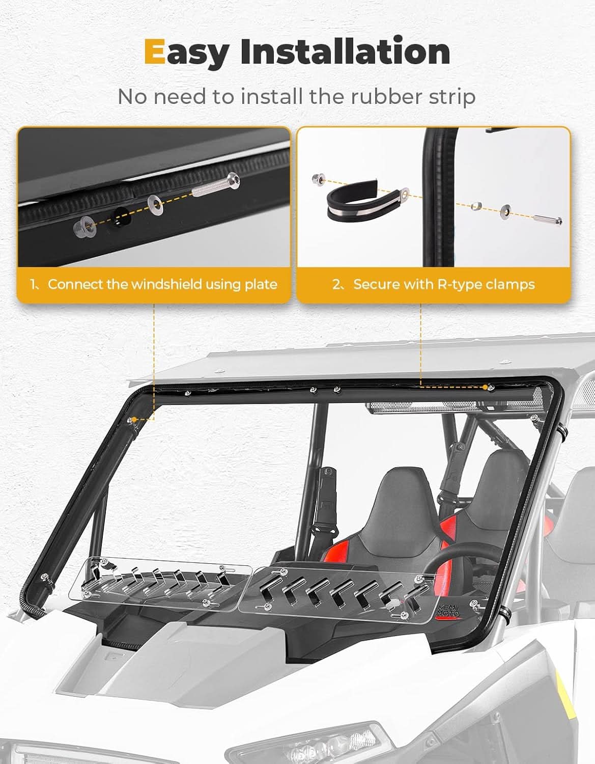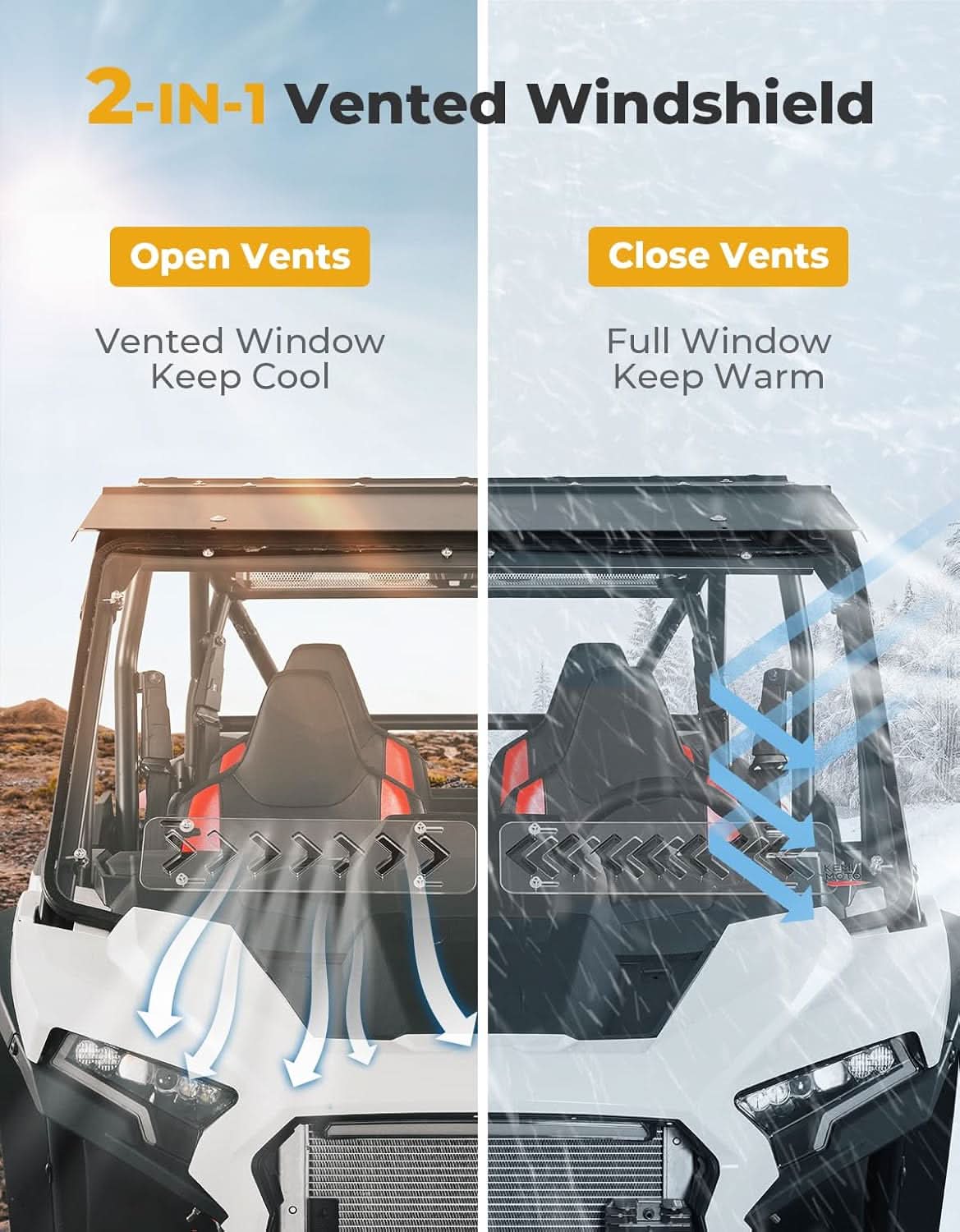 2-IN-1 Vented Windshield Pre-Installed Rubber Strip for 2024 2025 Polaris RZR XP 1000 / RZR XP 4 1000