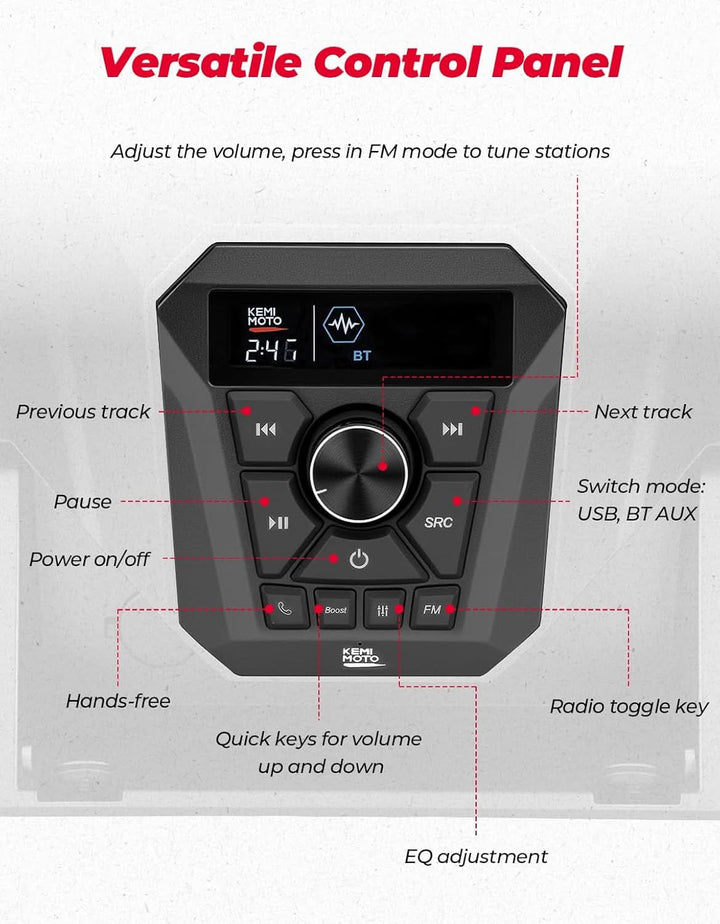 UTV 3-Speaker Audio Kit For Ranger 1000|1000 XP 1000|XP Crew - Kemimoto