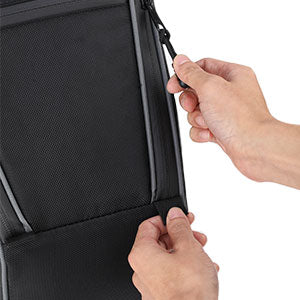 The PE panel can support the storage bag and keep the shape of the bag. And the soft fabric lining is designed to be won't get wet so easily while driving on the muddy road.