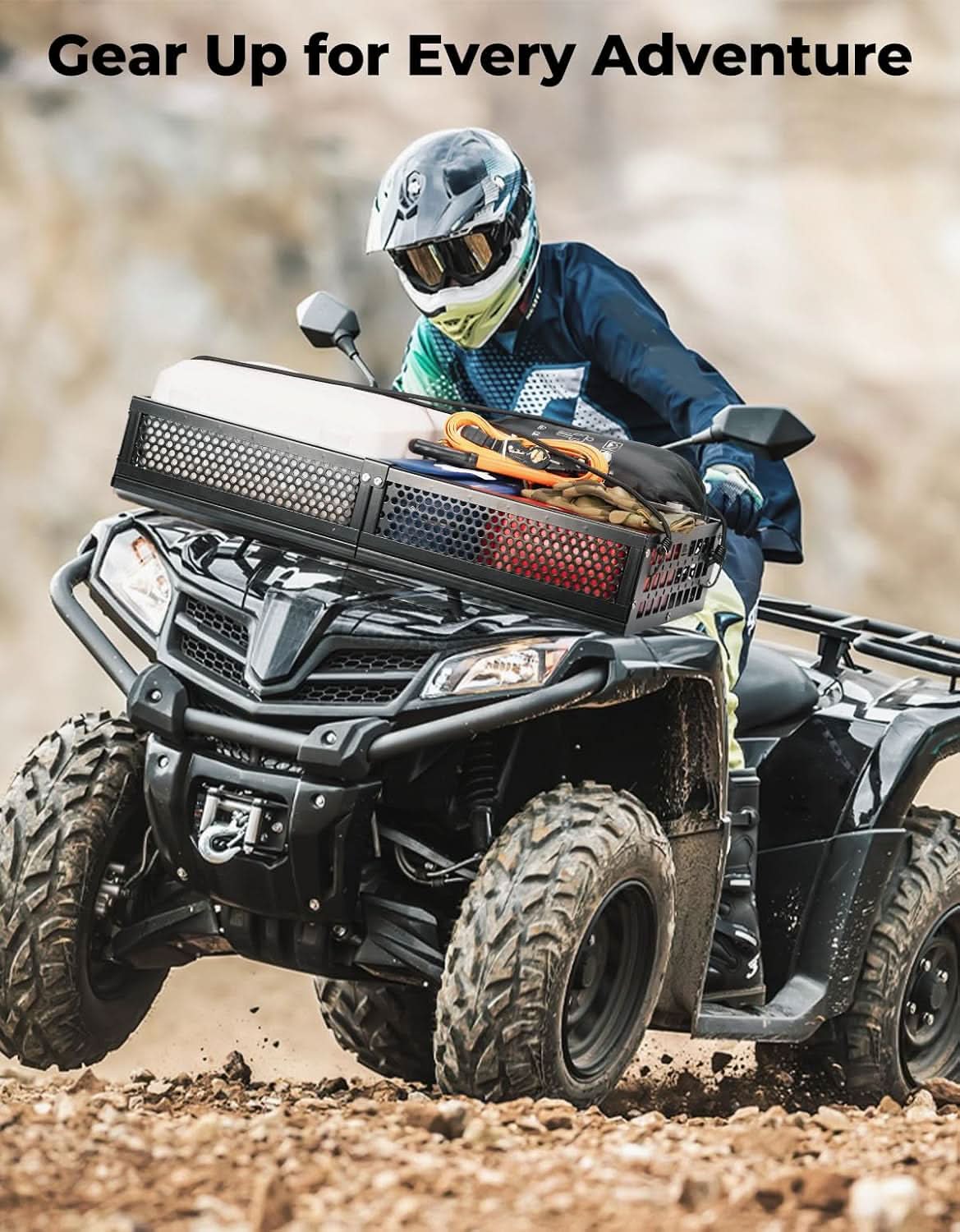 ATV Front Cargo Basket with Steel Mesh Surface for Kawasaki, Universal for Golf Cart Tractor