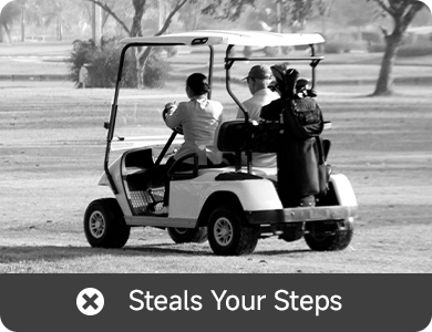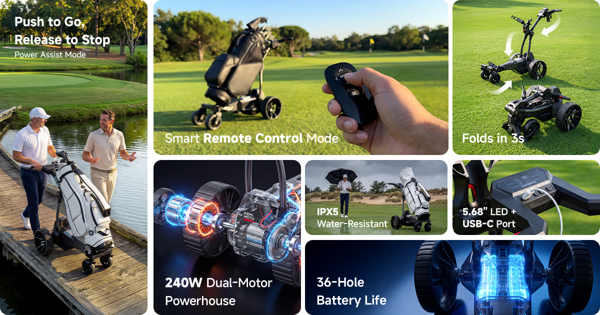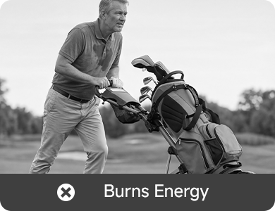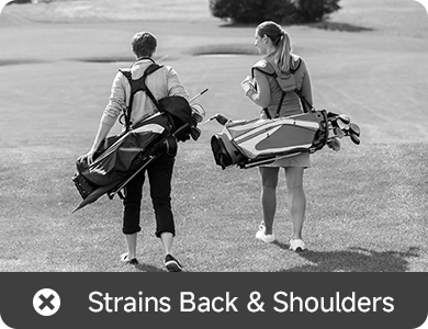 Riding in a cart saves energy, but you lose the walk and the workout. Push a manual cart and the struggle shows up fast—hills, tight turns, uneven turf, and long rounds that leave your arms and back tired. Carrying a bag isn’t much better, with shoulder and upper-back strain building hole after hole.