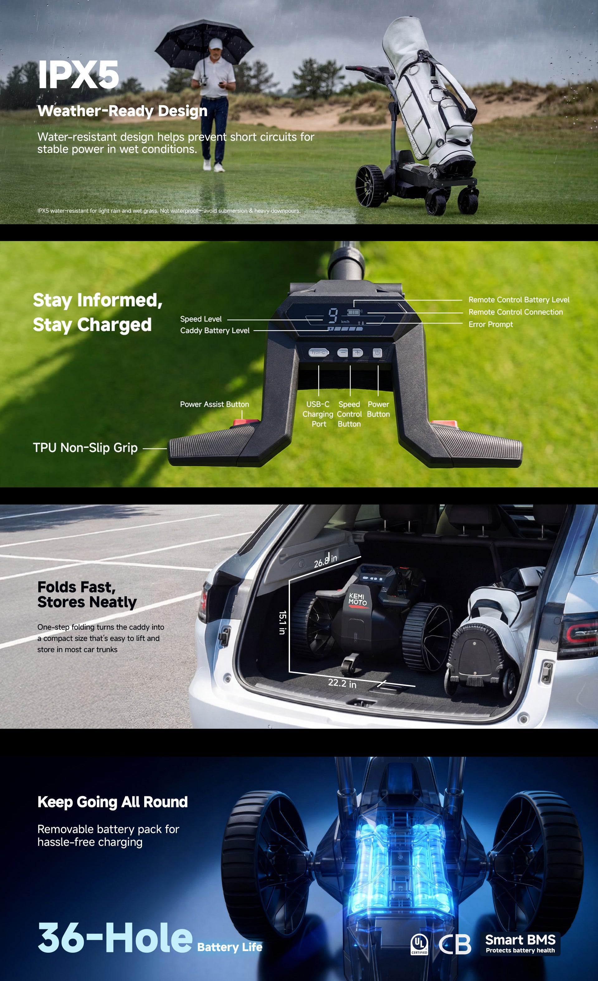 Kemimoto is proud to be a trusted provider of high-quality electric golf push carts. Our commitment to quality, innovation, and customer satisfaction sets us apart, ensuring our golf carts deliver reliable performance, smart convenience, and lasting durability to enhance your experience on the course.