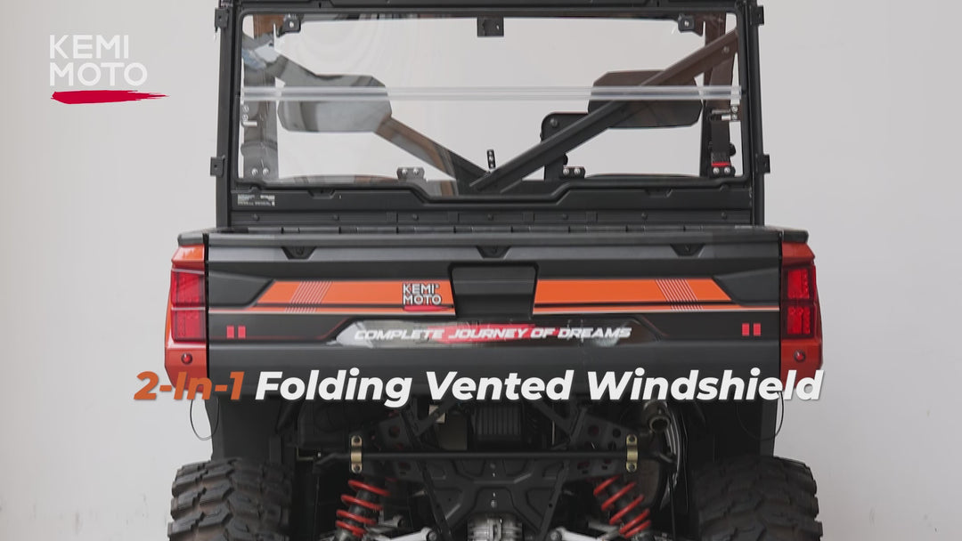 2-IN-1 Foldable Vented Rear Window for Polaris Ranger XP 1000/Crew 2017-2025 - Kemimoto