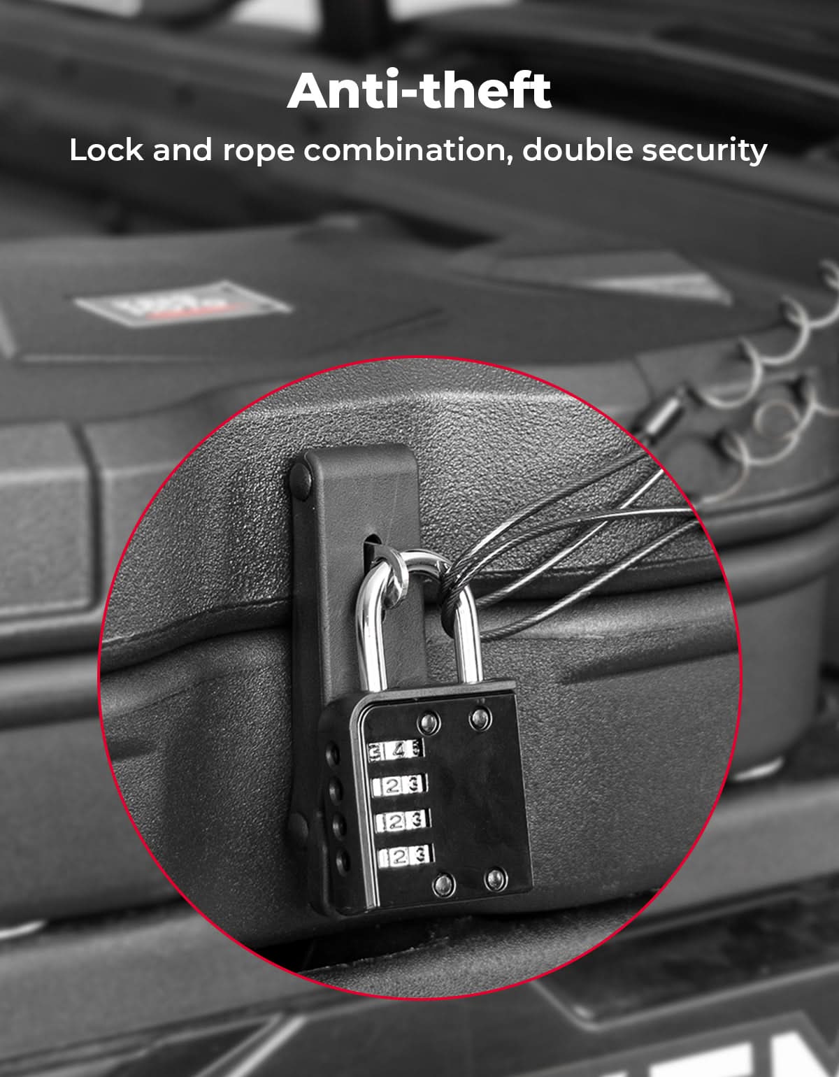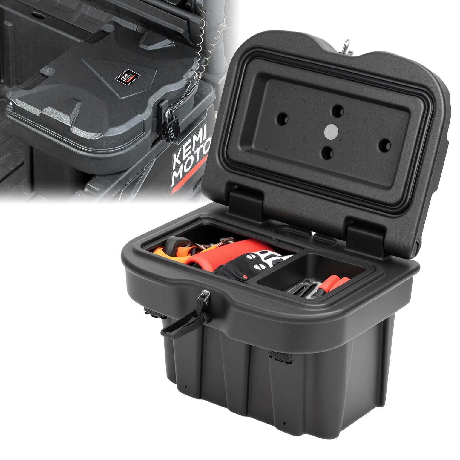 Expand your cargo space with the KEMIMOTO 21L UTV storage box, designed for Can-Am Defender and Commander models. With 5.5 gallons of storage capacity, it easily holds tools, gloves, snacks, and trail essentials. Waterproof rubber seals help keep rain, snow, and dust out, protecting your gear in all conditions. The heavy-duty LDPE lid supports up to 75kg and resists crushing for long-lasting durability. A built-in combination lock and steel cable add extra security against theft. Quick-release hooks allow tool-free installation and removal, making it a convenient and reliable storage upgrade for every ride.