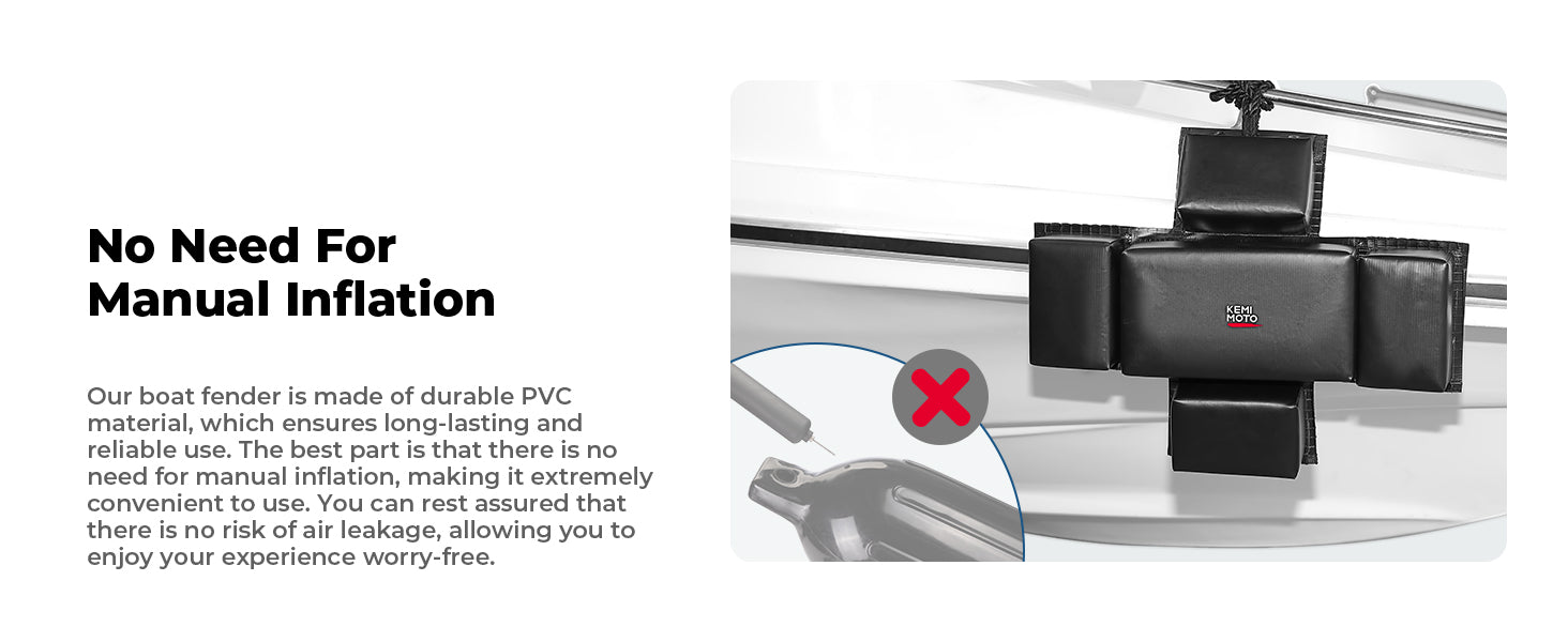 Our boat bumper made of durable PVC material,which ensures long-lasting and reliable use. The best part is that there is no need for manual inflation, making it extremely convenient to use.