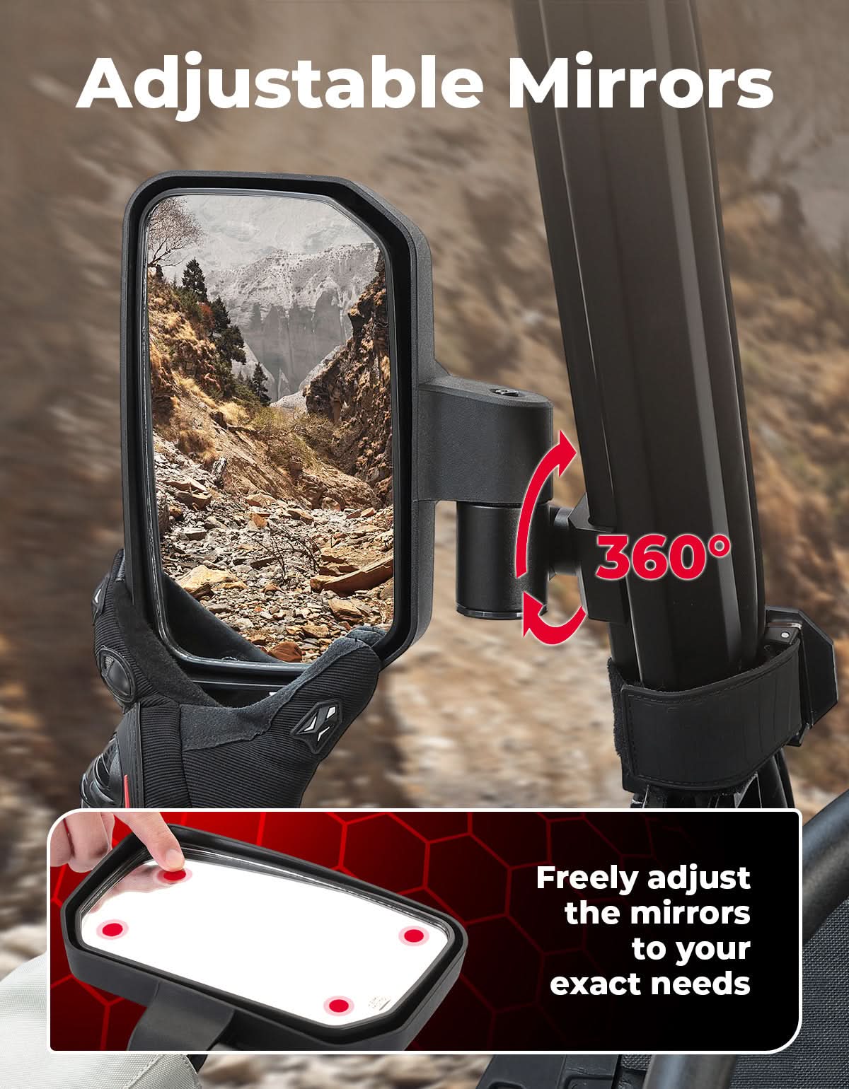 Spring Back UTV Side Mirrors for Polaris ,Can-Am, CFMOTO